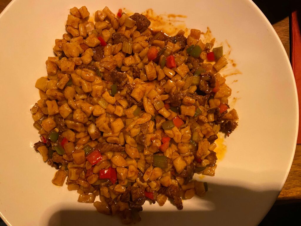 An Weihnachten vereinbarten wir ein gemeinsames Treffen für heute Abend und verabredeten uns im Taklamakan am Isartorplatz. Das Taklamakan ist ein uigurisches Restaurant in München und nachdem ich noch nie dort war und vorher auch noch nicht uigurisch gegessen hatte, war ich sehr gespannt, was mich erwarten würde. Kurz gesagt, das Essen war fantastisch und die Portionen riesig, was ich nicht erwartet hätte. Wenn man in Bayern aufwächst, ist man durchaus große Portionen gewöhnt, aber was einem dort serviert wurde, war selbst für mich nicht zu schaffen. Im Grunde hätte die bestellte Vorspeise bereits gereicht, mich zu sättigen. Da Stefan und Agnes ebenfalls einen Gurkensalat als Vorspeise bestellt hatten, beschlossen wir einfach kurzerhand, die Vorspeisen auf uns vier, später sogar noch auf den fünften Nachzügler aufzuteilen. Ansonsten hätte ich von der Hauptspeise wohl kaum noch etwas heruntergebracht.